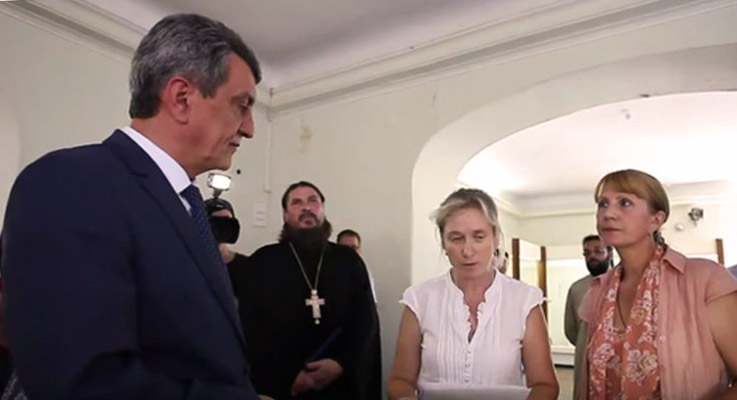 Прибывшему чиновнику, а также губернатору и Сергию Халюте сотрудники передали выписку из протокола и резолюцию, принятую по итогам собрания, проведенного 3 августа, на котором коллектив выразил единогласный протест против назначения нового директора – святого отца и отказ работать под его руководством, мотивируя некомпетентностью новоназначенного.