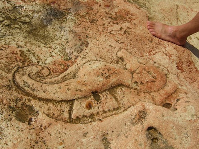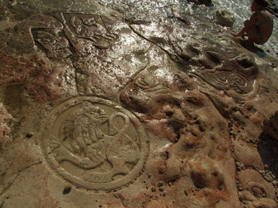 Пока севастопольцы жарко спорят в интернете (forum.sevastopol.info), на рисунки кота, морского дракона, грифона, человеческого лица, зубастой рыбы, шута мерно накатываются волны. Каменные борозды постепенно зарастают водорослями. Отдыхающие туристы передают друг другу фотоаппараты, прося заснять их рядом с загадочными изображениями.